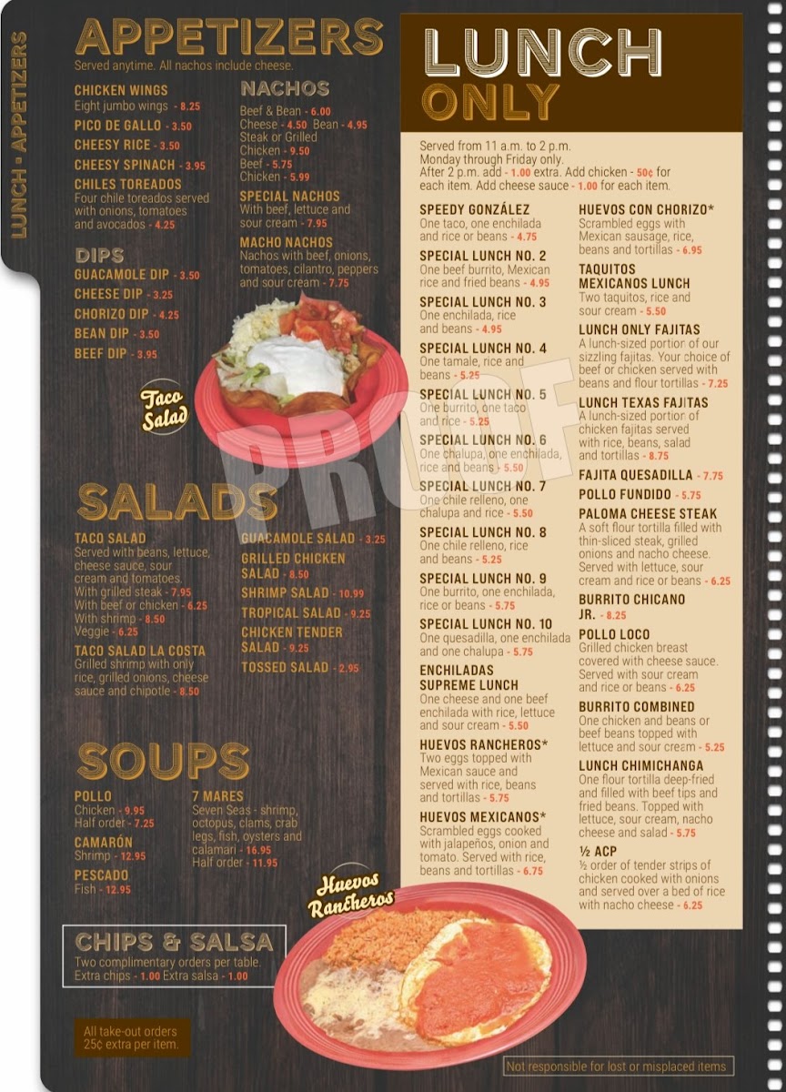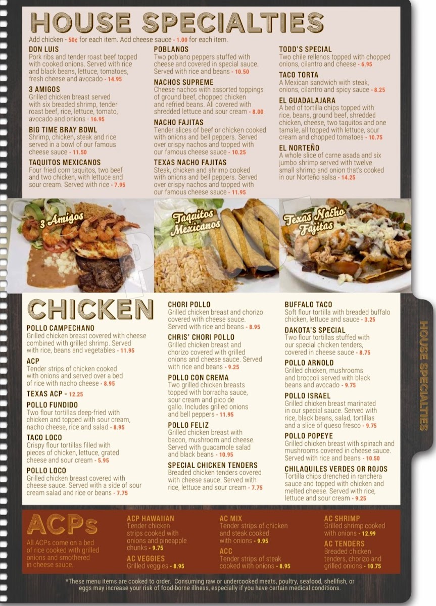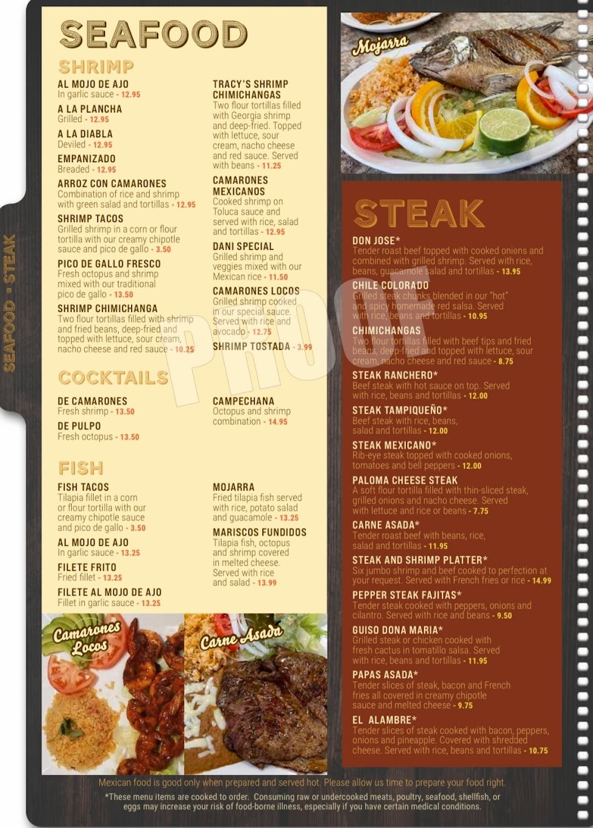 As a reviewer wrapping up my look at the menu at Mi Paloma Mexican Restaurant (131 Independence Blvd, Morganton, NC 28655), what stands out most is the sheer breadth and confidence of its offerings, which feel designed to satisfy both casual lunch crowds and diners seeking a full Mexican feast. The menu moves seamlessly from hearty ACPS like ACP Hawaiian, ACC, and AC Shrimp to lighter options such as Chicken Tender Salad, Guacamole Salad, and Grilled Chicken Salad. Comfort and indulgence come through in the Quesadillas, including Quesadilla Roja, Lupita’s Quesadilla, and the crave-worthy Quesabirrias, while the Lunch Only section-featuring Special Lunch No. 7, Special Lunch No. 10, Huevos Rancheros, and Speedy González-keeps midday dining quick but satisfying. Protein lovers will appreciate the variety of chicken dishes like Pollo Feliz, Pollo Campechano, and Pollo Fundido, complemented by shareable Appetizers such as Chicken Wings, Chiles Toreados, and Cheesy Spinach. Families are clearly welcomed with a thoughtful Kids menu, from Quesadilla And Rice to Grilled Cheese Sandwich And Fries. Traditional favorites shine in Enchiladas Rancheras, Enchiladas Suizas, and Enchiladas Supremas, while bold flavors continue through Burrito Especial, Giant Steak Burrito, and steak plates like Carne Asada and Steak And Shrimp Platter. Seafood fans are well covered with shrimp dishes like Camarones Locos and fish specialties such as Mojarra and Fish Tacos. Add to that sizzling Fajitas, comforting Soups like 7 Mares / Seven Seas, a robust Salsa Bar featuring SALSA PICOSA* and SALSA JALISCO*, plus classic Desserts like Fried Ice Cream and Churros, and the menu ultimately reads as a generous, crowd-pleasing celebration of Mexican cuisine that confidently rounds out the dining experience at Mi Paloma.
