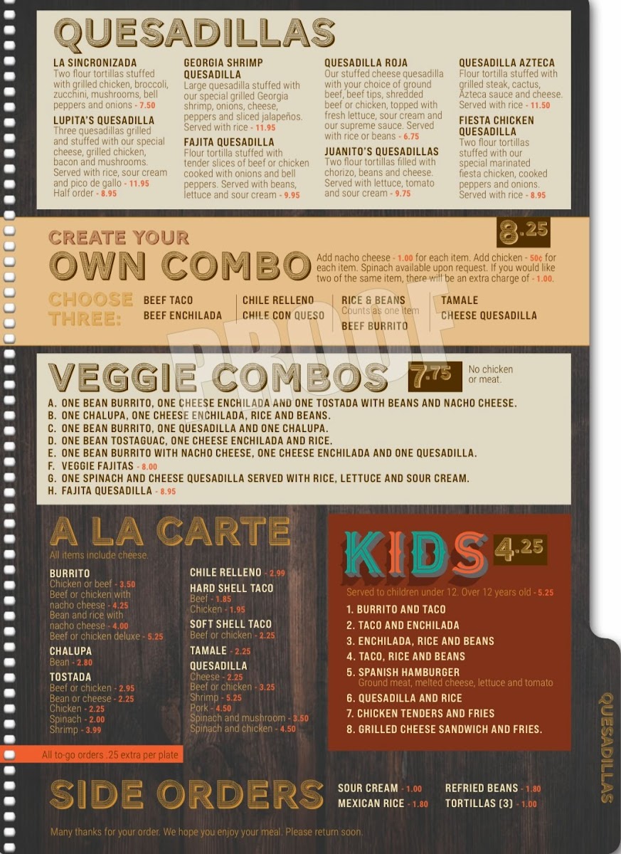 Served with beans, lettuce, cheese sauce, sour cream, and tomatoes.
